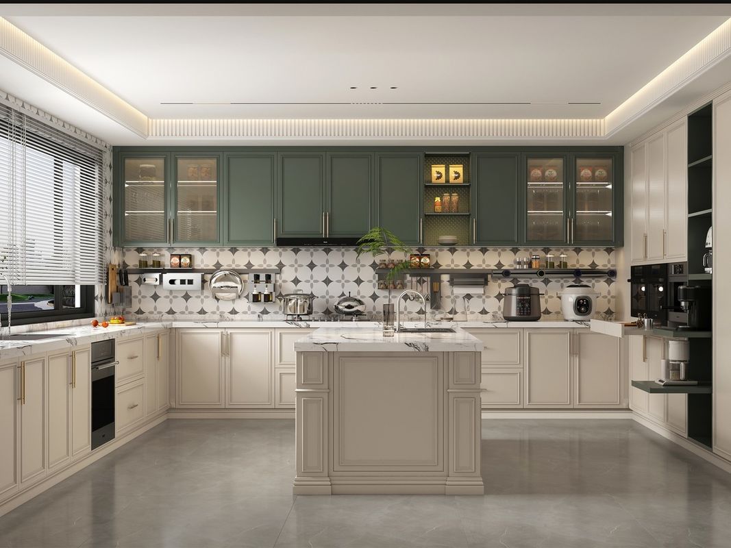 Trasforma la tua cucina in un paradiso di stile e funzionalità con gli armadi in acciaio inossidabile Fadior, che incarnano l'eleganza del design francese.Elaborato con precisione e attenzione ai dettagli, questa cucina combina il fascino senza tempo dello stile francese con la raffinatezza moderna dell'acciaio inossidabile, offrendo una soluzione lussuosa ma pratica per la vostra casa.in una miscela armoniosa di toni cremosi e verdi profondi, che completano perfettamente gli accenti di acciaio inossidabile eleganti e lucidi che definiscono il carattere distintivo di questa cucina.
