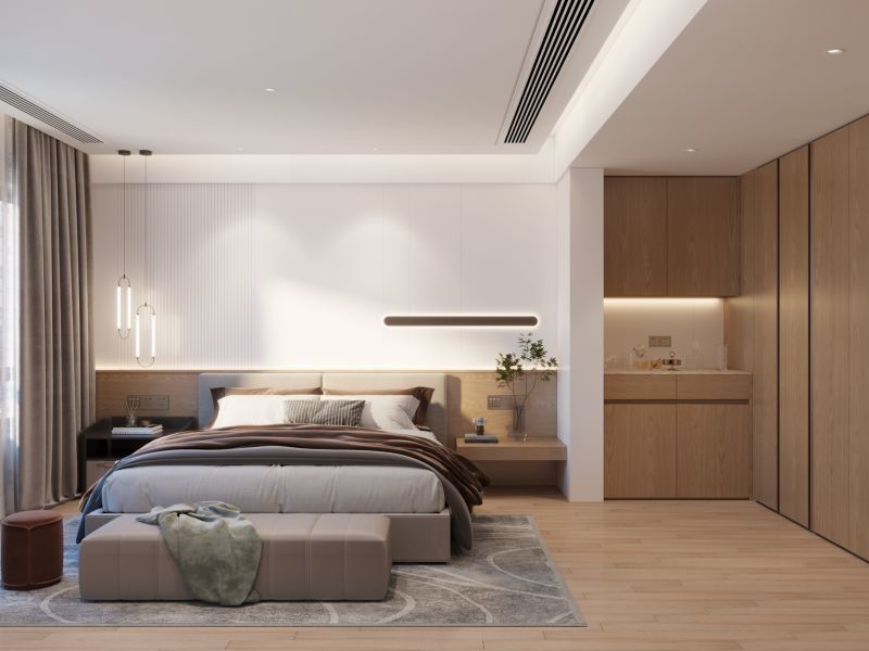 Questo guardaroba personalizzato è costruito attorno a una strategia di finitura differenziata: venatura del legno abbinata a una struttura dell'armadio in acciaio inossidabile. Questa combinazione offre agli acquirenti un'espressione di lusso più calda senza perdere la facilità di pulizia e la durata del progetto attese dalla falegnameria in acciaio inossidabile.