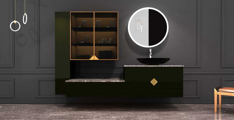 | D: Quali segnali di personalizzazione sono già visibili su questa pagina del mobile da bagno sospeso verde muschio? I segnali più chiari sono il coordinamento delle dimensioni, il colore verde e gli scaffali a giorno con ante in vetro e scomparti nascosti. Questi indizi aiutano un acquirente a giudicare se il fornitore può adattare il prodotto a un progetto invece di spedire un modulo fisso per la vendita al dettaglio. |