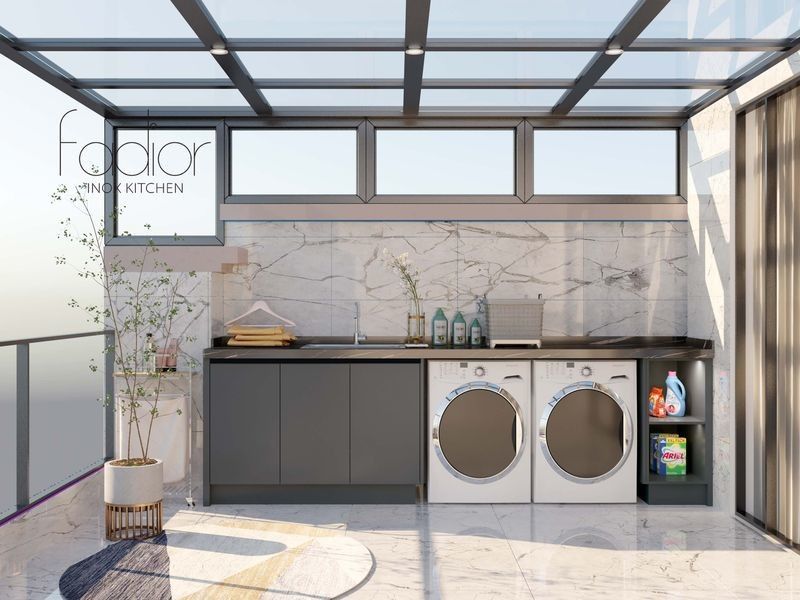 | Caratteristiche di Stoccaggio | Include un mobile autoportante, uno spazio per lavatrici e asciugatrici e una mensola aperta integrata |