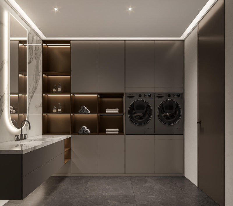 | D: Cosa dovrebbero verificare gli acquirenti prima dell'inizio della produzione? La conferma finale dovrebbe solitamente coprire la logica del layout, il set lavatrice-asciugatrice integrato perfettamente nel design per un aspetto ordinato e privo di ingombri. e l'integrazione del piano di lavoro. Bloccare questi elementi in anticipo riduce il lavoro di adattamento in cantiere in seguito. |