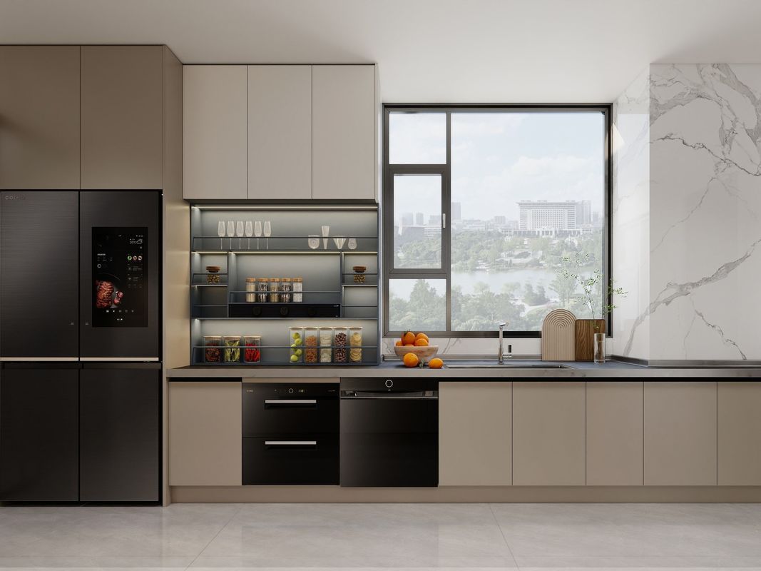 | D: Cosa devono verificare gli acquirenti prima di iniziare la produzione? La conferma finale dovrebbe generalmente riguardare il layout a forma di L, la torre del forno integrata e il piano di lavoro in pietra nera di alta qualità. |