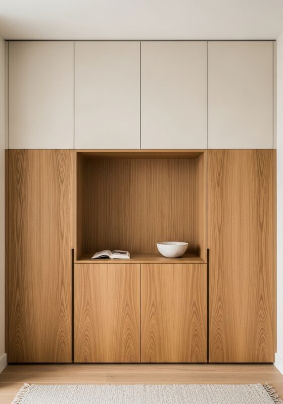 | Utilizzatori | Sistema di guardaroba per la camera da letto primaria per ambienti residenziali in cerca di tranquillità, lusso di archiviazione senza rumore visivo; adatto per stanze orientate a est o a nord dove la luce naturale morbida è apprezzata |